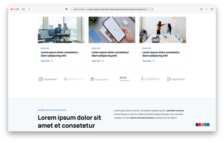 In wenigen Klicks eine von vielen sorgfältig ausgearbeiteten Demos importieren und als Kickstart für die eigene Website nutzen. Mit team4data lassen sich Templates einfach neu anordnen, visuell anpassen, und mit eigenen Inhalten zum Leben erwecken.